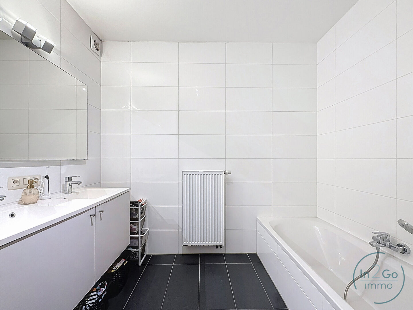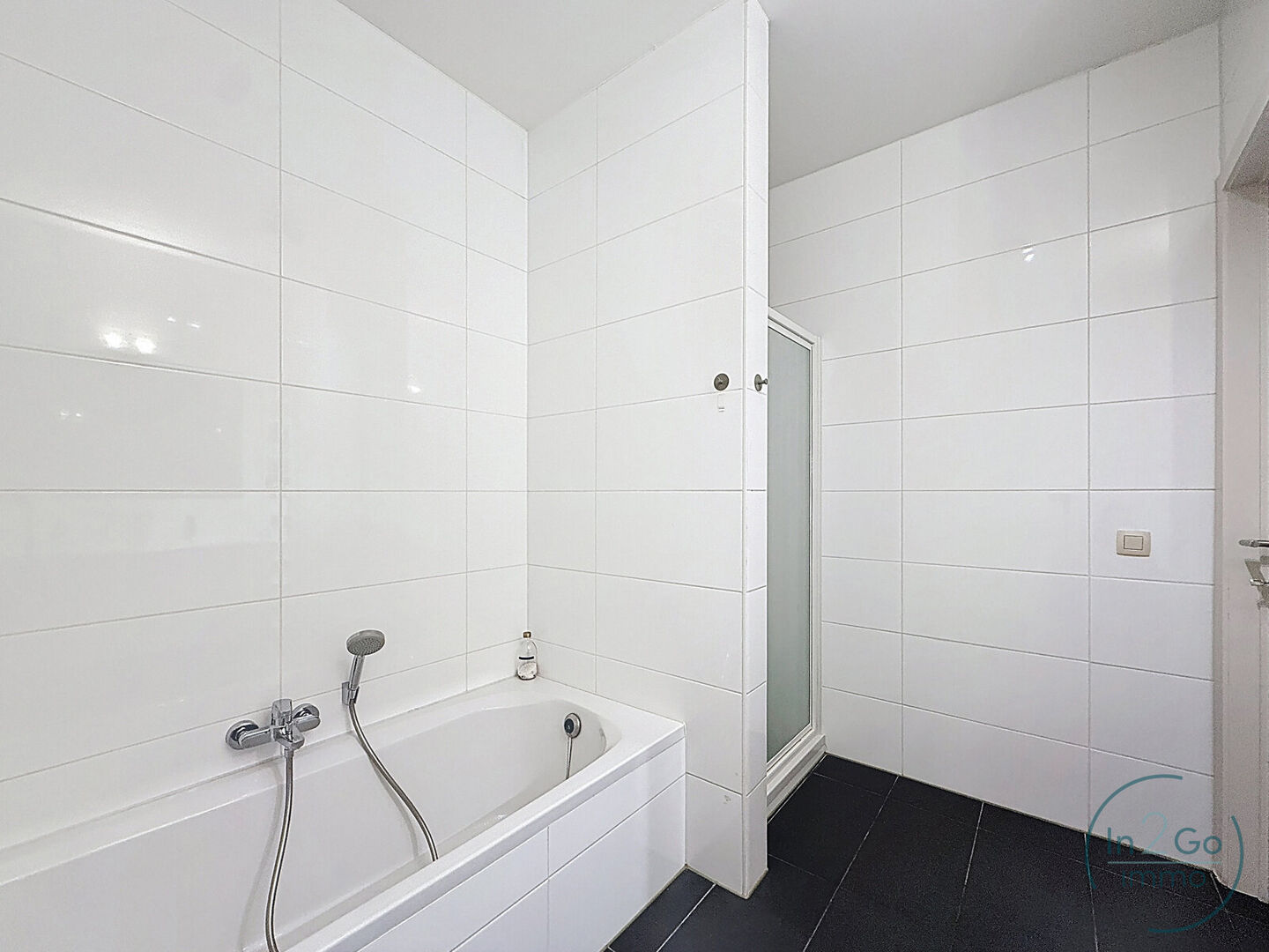 Het appartement beschikt over twee volwaardige slaapkamers, waarvan één met directe toegang tot een extra terras — ideaal als rustplek of ontbijthoek. De kwaliteitsvolle badkamer is ingericht met een dubbel lavabomeubel, ligbad én douche. Vanuit de woonkamer bereikt u het ruime, zonnige terras dat uitkijkt over de prachtig aangelegde gemeenschappelijke parktuin, een oase van rust midden in Hasselt.