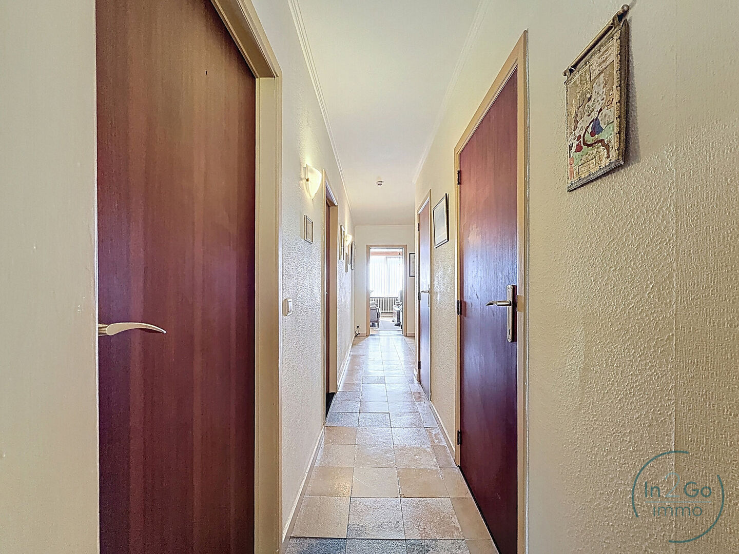 Het appartement zelf is ruim en praktisch ingedeeld. Via de inkomhal bereikt u de lichtrijke leefruimte met een gezellige zithoek en een praktische eethoek. Aansluitend bevindt zich een aparte, ingerichte keuken. De nachthal geeft toegang tot een apart toilet, een ingerichte badkamer (lavabomeubel, douche in bad en aansluiting voor wasmachine), en drie slaapkamers. De eerste slaapkamer biedt toegang tot een balkonnetje, daarnaast is er een ruime master bedroom en een derde, compactere kamer die perfect kan dienen als bureau of hobbyruimte.
