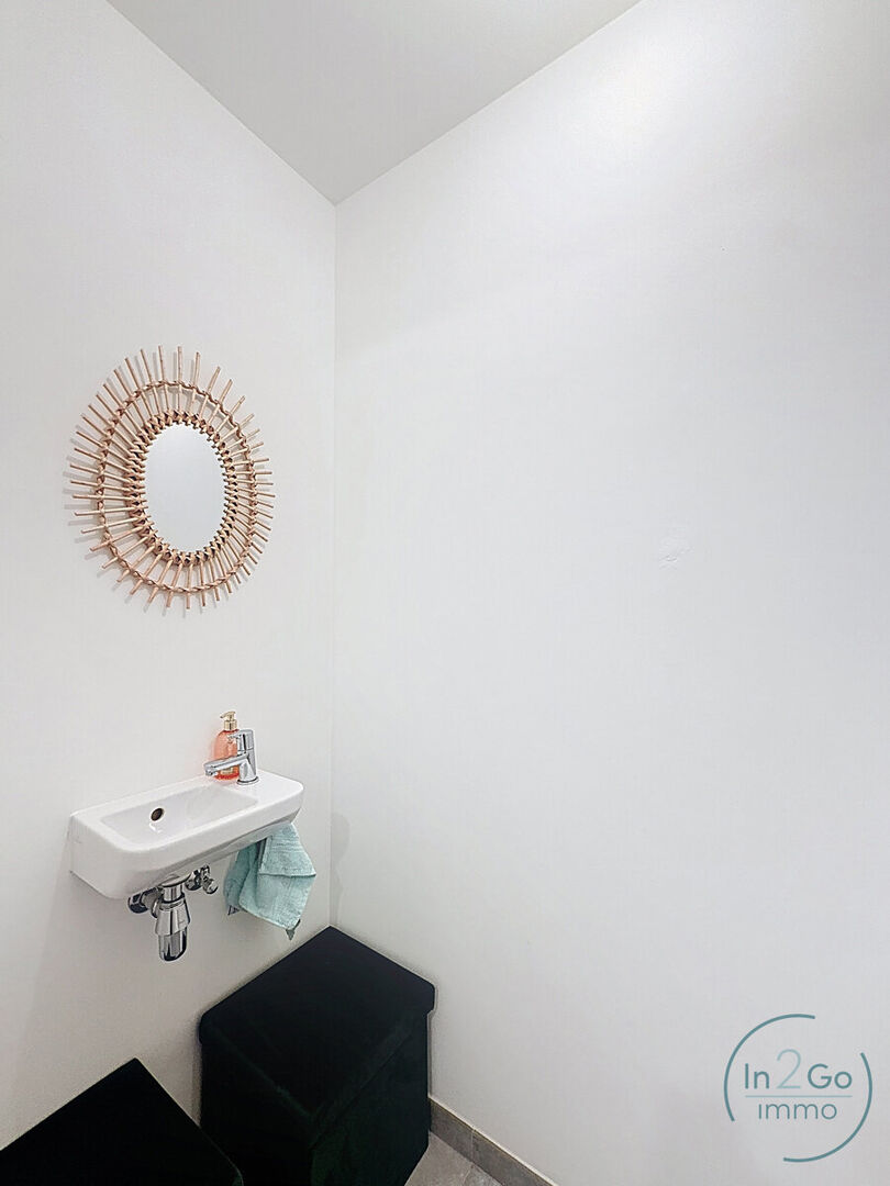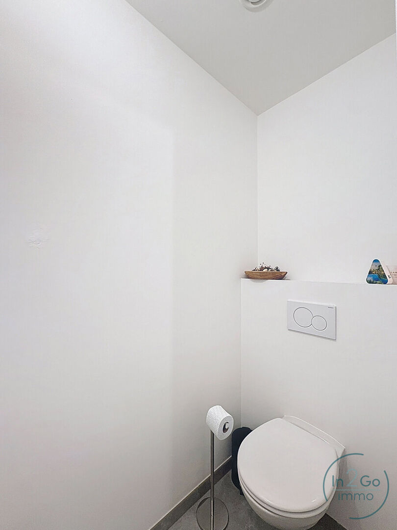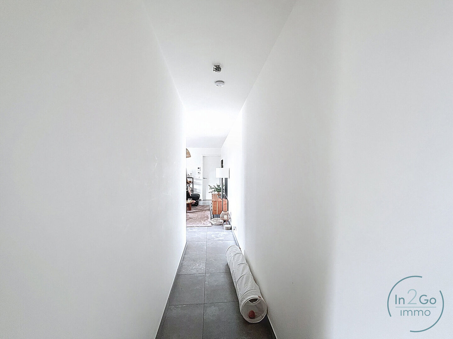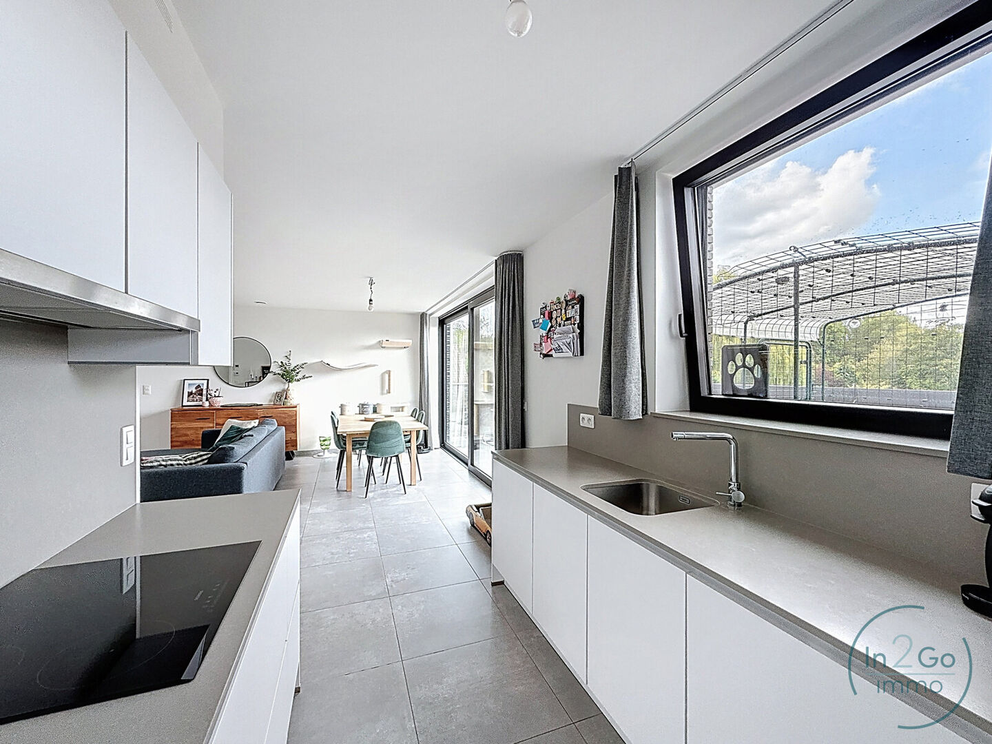 Bij binnenkomst treft u een inkomhal met een apart gastentoilet. De leefruimte is bijzonder lichtrijk en geeft toegang tot een ruim en zonnig terras van maar liefst 16 m², gelegen aan de achterzijde van het gebouw voor extra privacy en rust. De open keuken is volledig uitgerust en voorzien van alle hedendaags comfort: inductiekookplaat, oven, microgolfoven, vaatwasser, inbouwkoelkast en diepvriezer. Aansluitend is er een praktische berging met aansluiting voor wasmachine en droogkast.