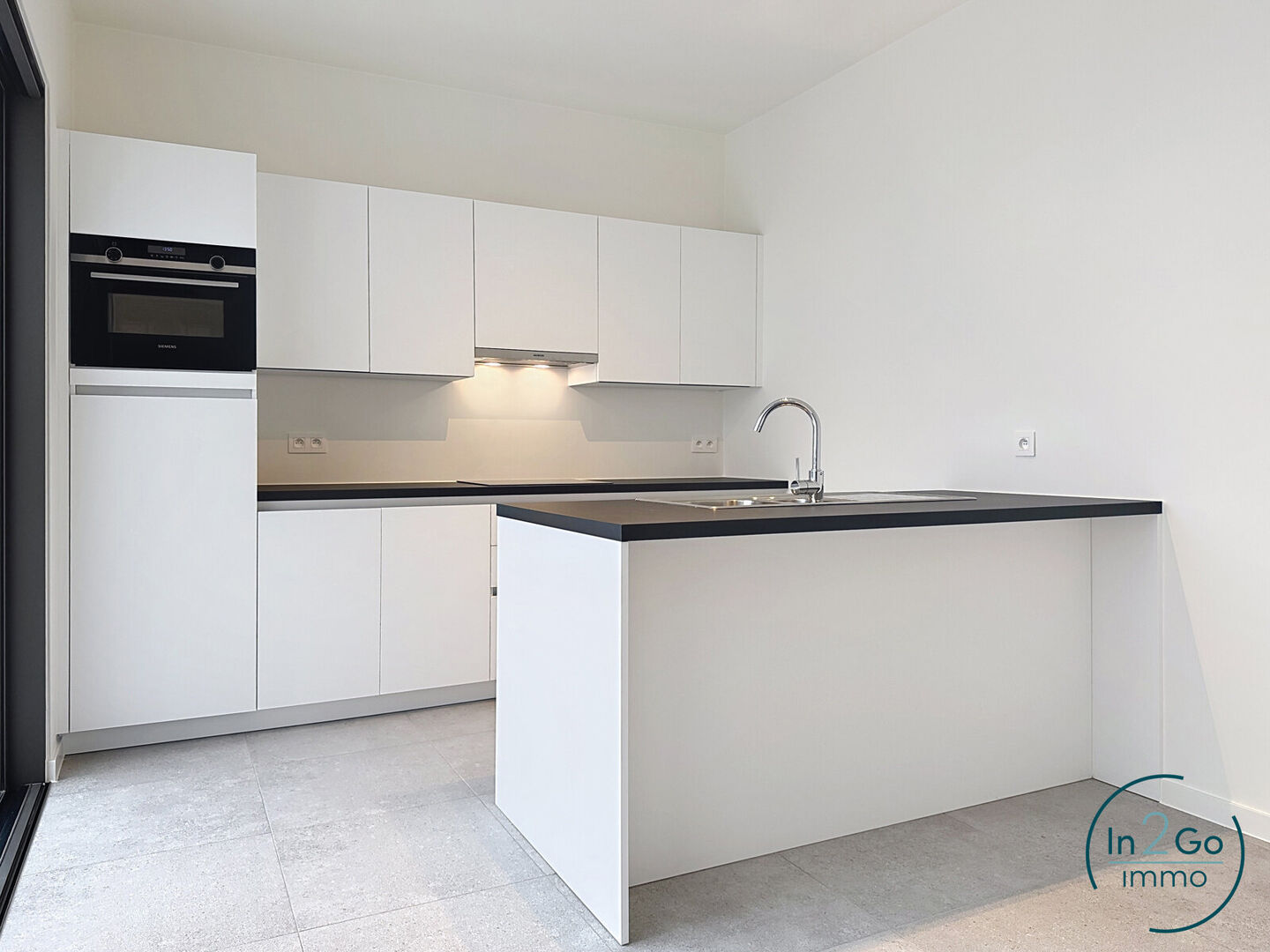 Een lichtrijke leefruimte met knap ingerichte open keuken (voorzien van inductievuur, combi-oven, frigo, vaatwas) en berging maken het geheel af.