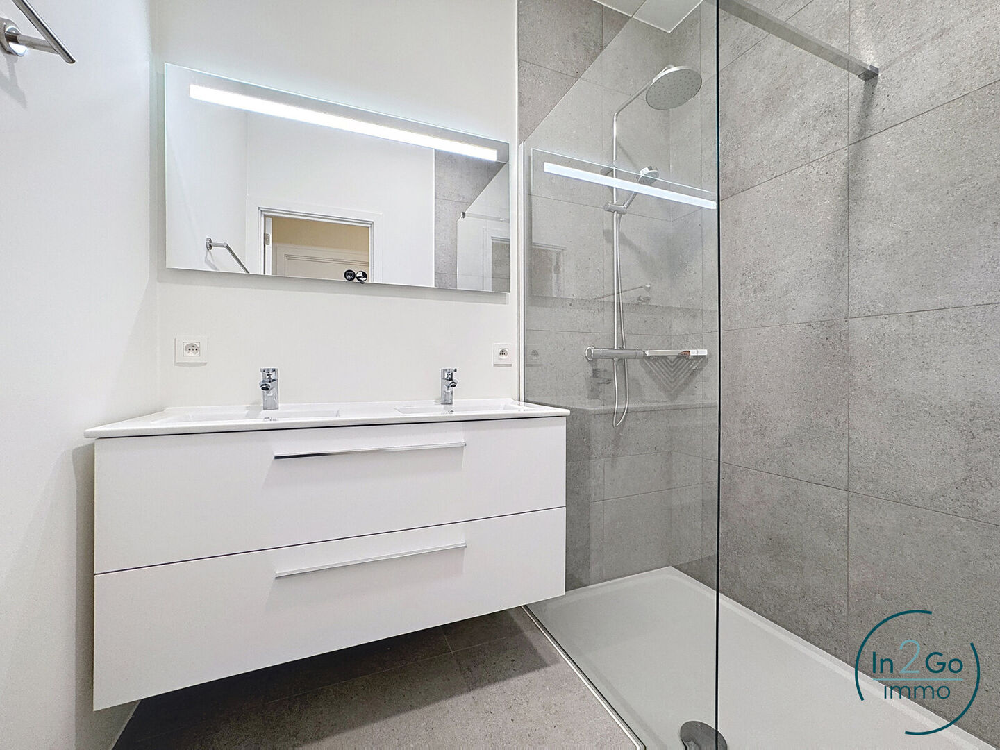 Via een ruime inkomhal komt u in de nachthal terecht die toegang geeft tot een gastentoilet, badkamer met dubbel lavabomeubel en ruime inloopdouche.