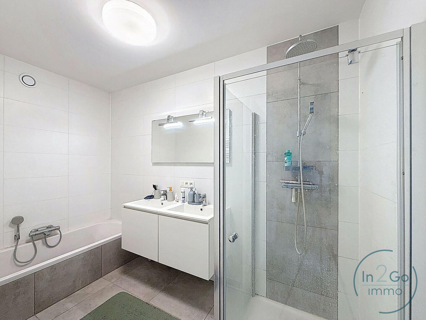 Via de nachthal bereik je twee mooie slaapkamers. De ingerichte badkamer beschikt over een douche en een ligbad alsook een dubbel lavabomeubel. Inclusief twee ondergrondse autostaanplaatsen (9 en 24) en een privatieve kelderberging (38).
