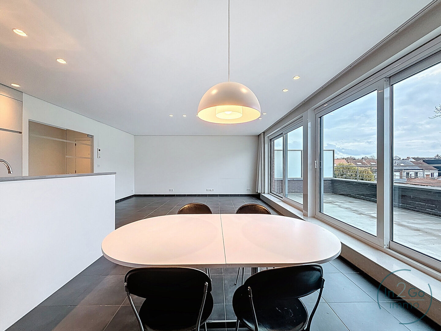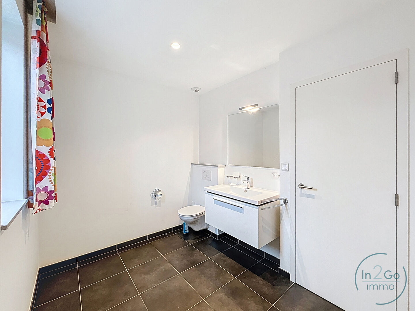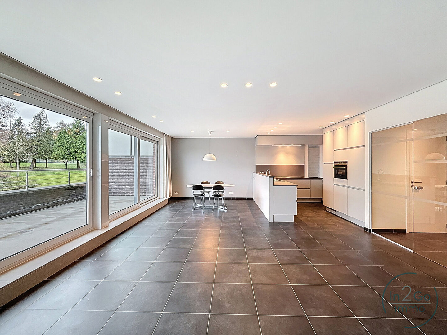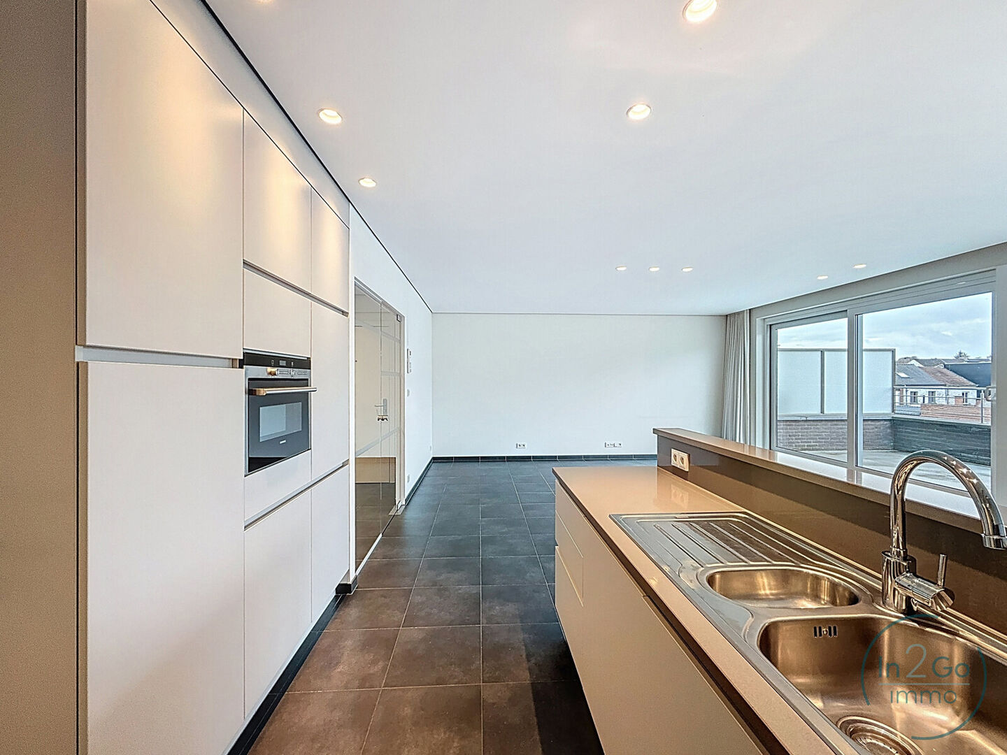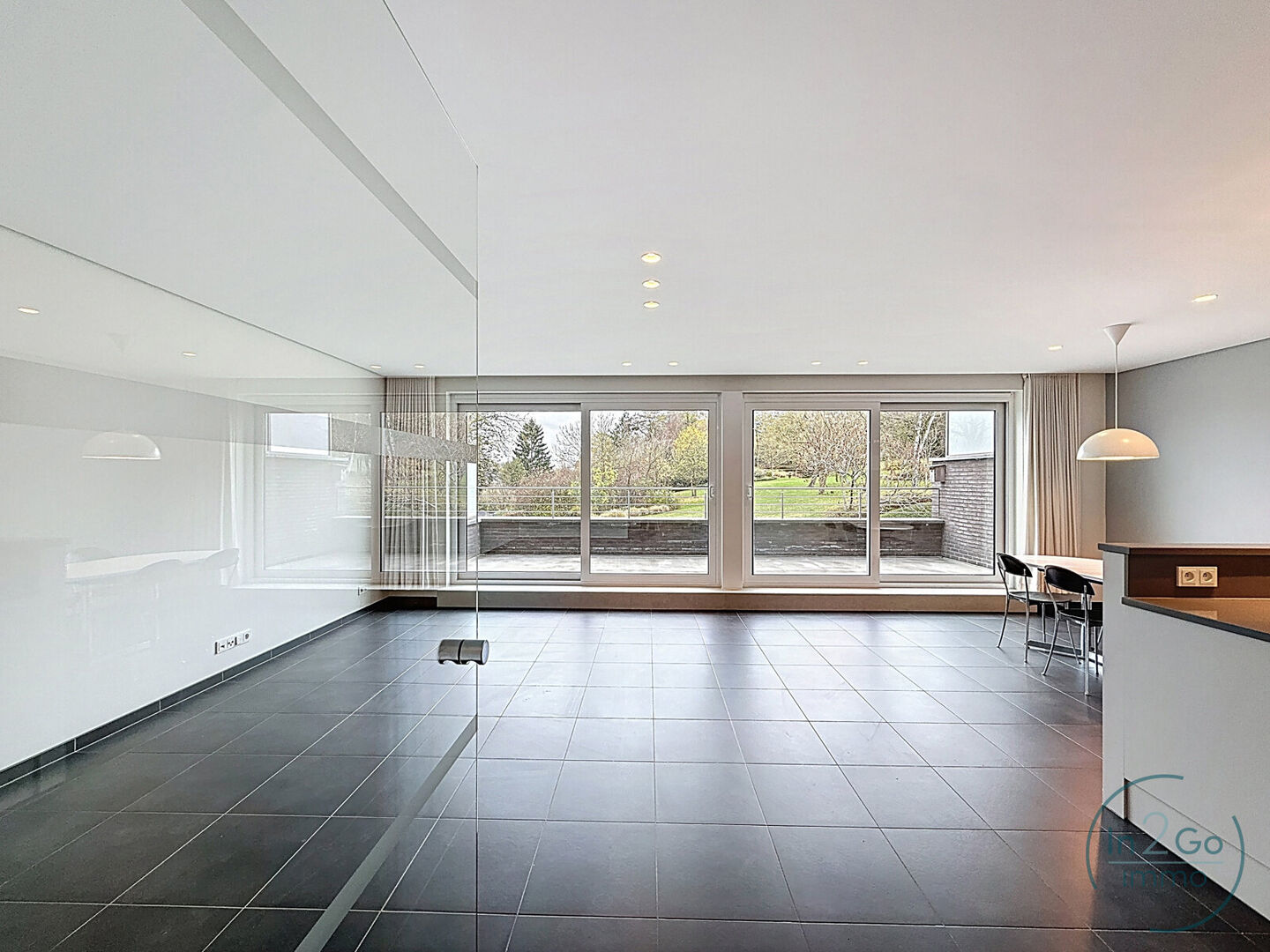 Dit ruime, energiezuinig duplex-appartement bevindt zich in een recent en uitstekend onderhouden gebouw met lift. Op de eerste verdieping verwelkomt de inkomhal met vestiairehoek en apart toilet u in een lichtrijke leefruimte, opgedeeld in een zithoek en eethoek, met grote raampartijen over de volledige breedte. Twee schuiframen geven toegang tot het grote terras waar u kunt genieten van een prachtig open zicht op de weidse gemeenschappelijke parktuin. De moderne, volledig geïnstalleerde open keuken, met aansluitende de praktische ruime berging, sluit naadloos aan op de leefruimte. Verder is er op dit niveau een ingerichte badkamer met toilet, lavabomeubel en ruime inloopdouche, en één slaapkamer.