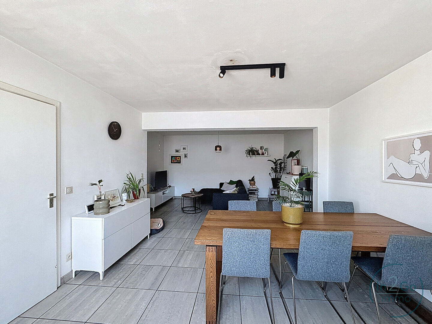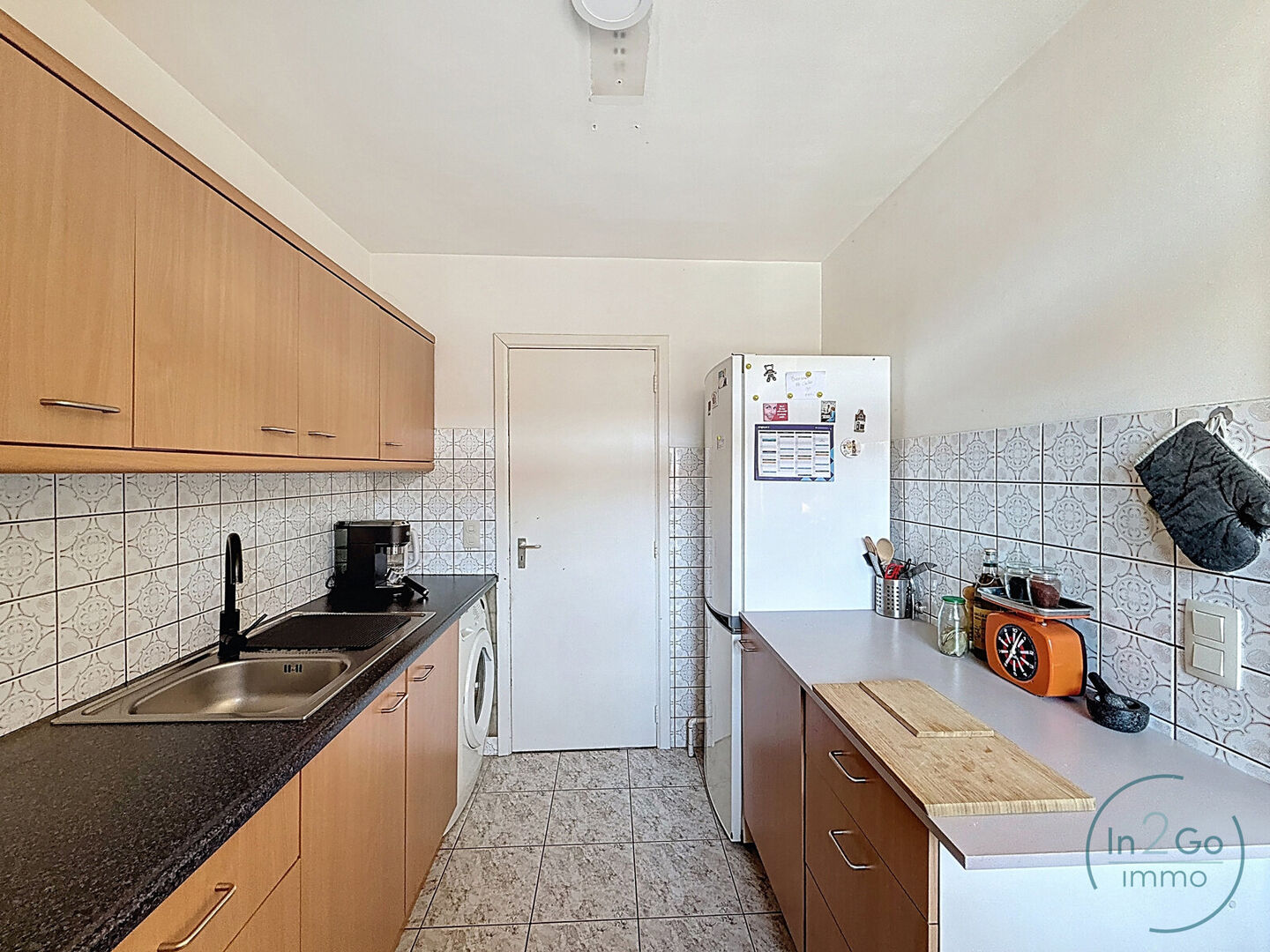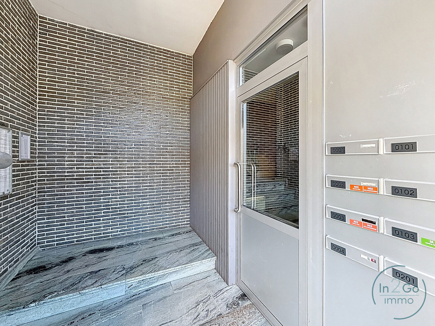 Het appartement zelf omvat een inkomhal met vestiairehoek en een apart gastentoilet. De ruime woonkamer geniet van veel natuurlijke lichtinval en sluit aan op een aparte, volledig geïnstalleerde keuken die toegang biedt tot het balkon aan de voorzijde van het gebouw. Via de nachthal bereikt u twee ruime slaapkamers, rustig gelegen aan de achterzijde, evenals een ingerichte badkamer.
