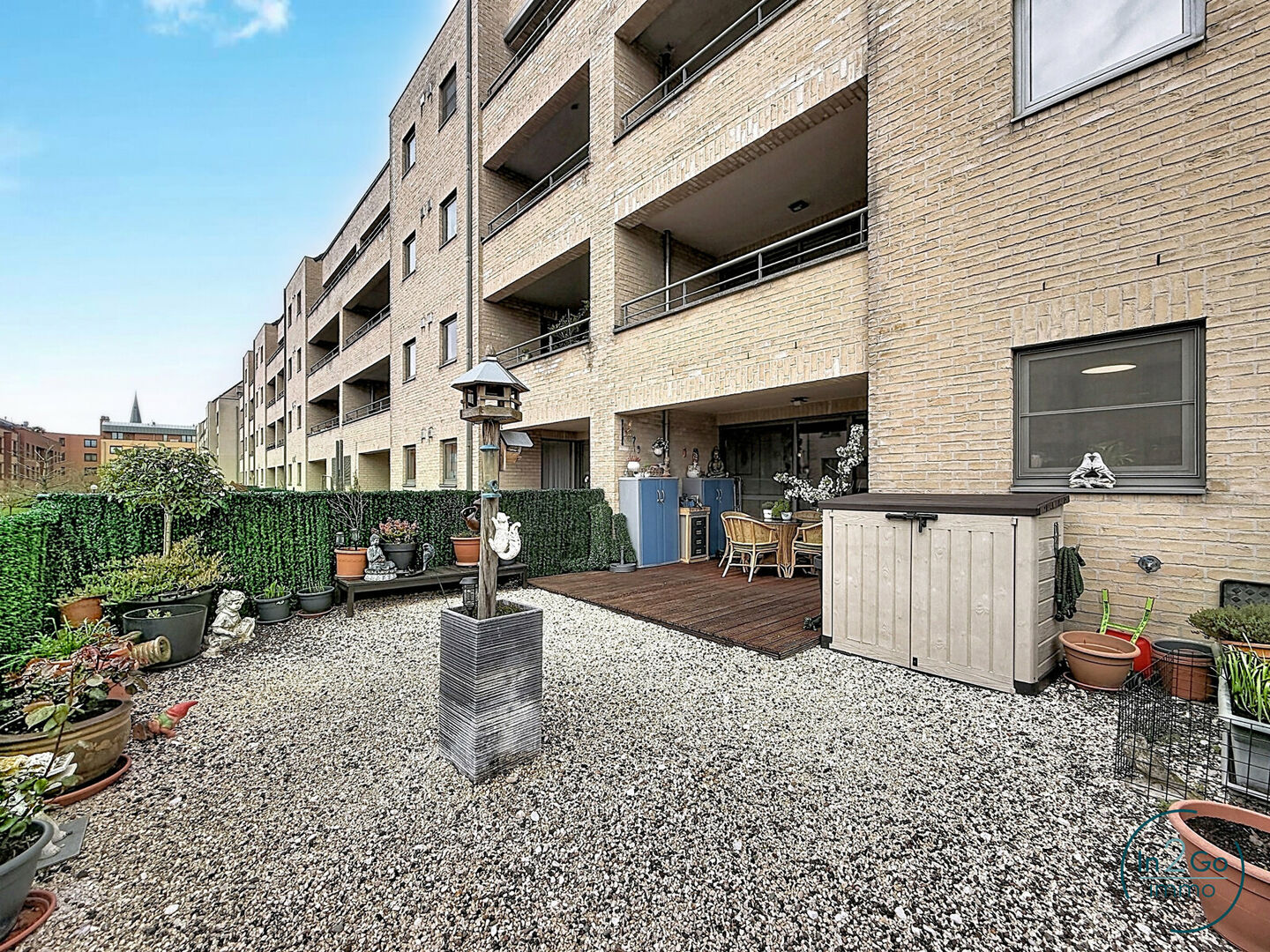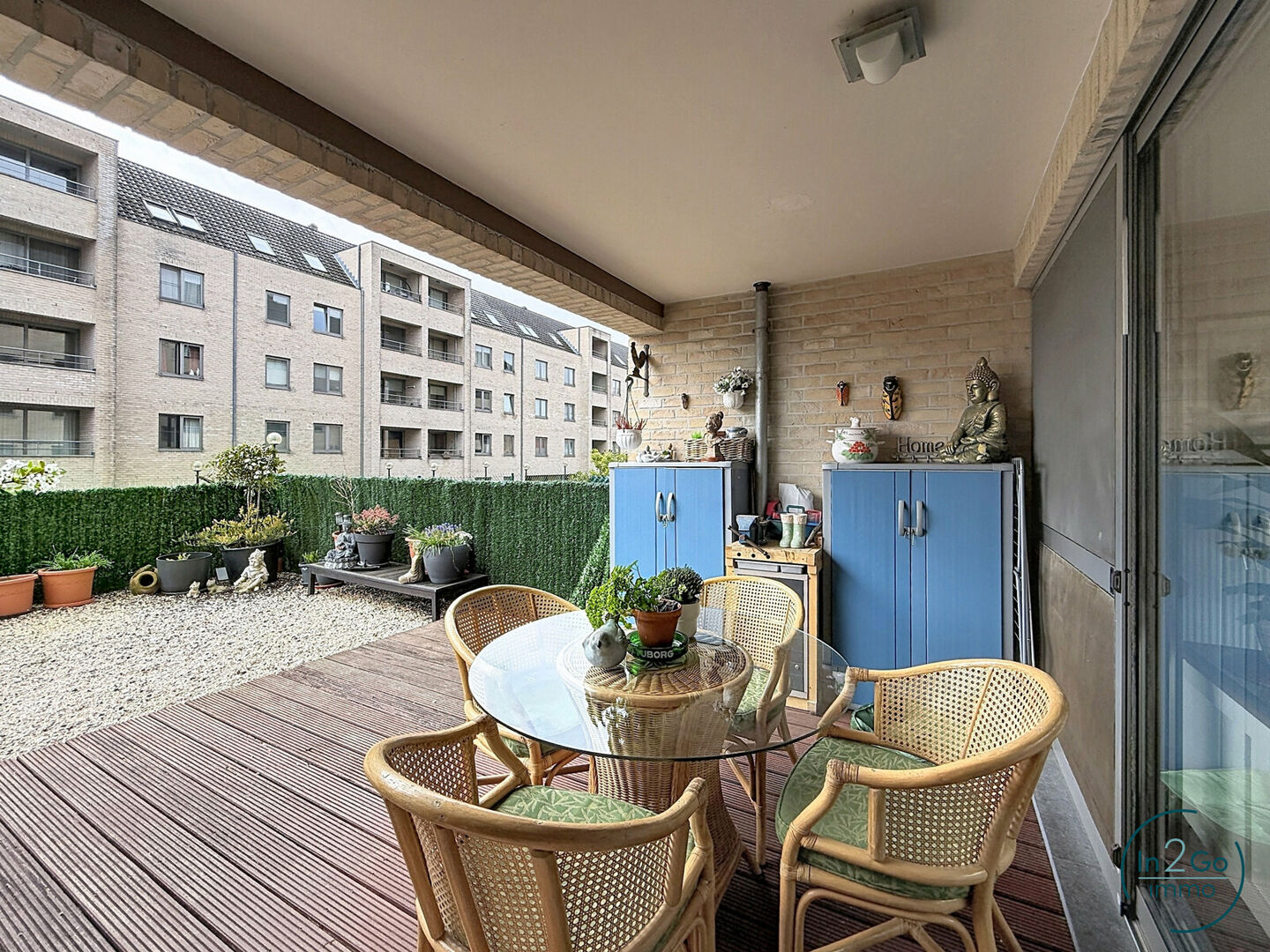 Het appartement omvat een inkom-/nachthal die toegang geeft tot alle ruimtes. De aparte, volledig geïnstalleerde keuken sluit aan op een praktische berging. De lichtrijke eetplaats geeft uit op het terras, waar een buitenkraantje voorzien is, en een gezellig tuintje. Aansluitend bevindt zich een knusse zithoek. Verder zijn er één ruime slaapkamer en een tweede, compactere kamer, een apart toilet en een ingerichte badkamer met bad, douche en enkel lavabomeubel.