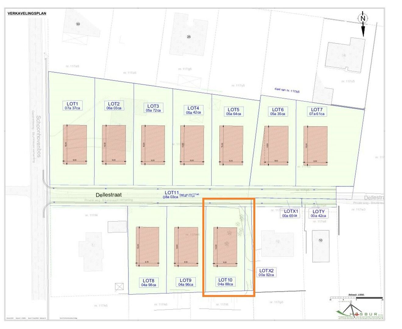 Prijzen zijn exclusief de kost van opmeting € 1.000 en de kost van verkaveling € 500, beiden excl. BTW.
