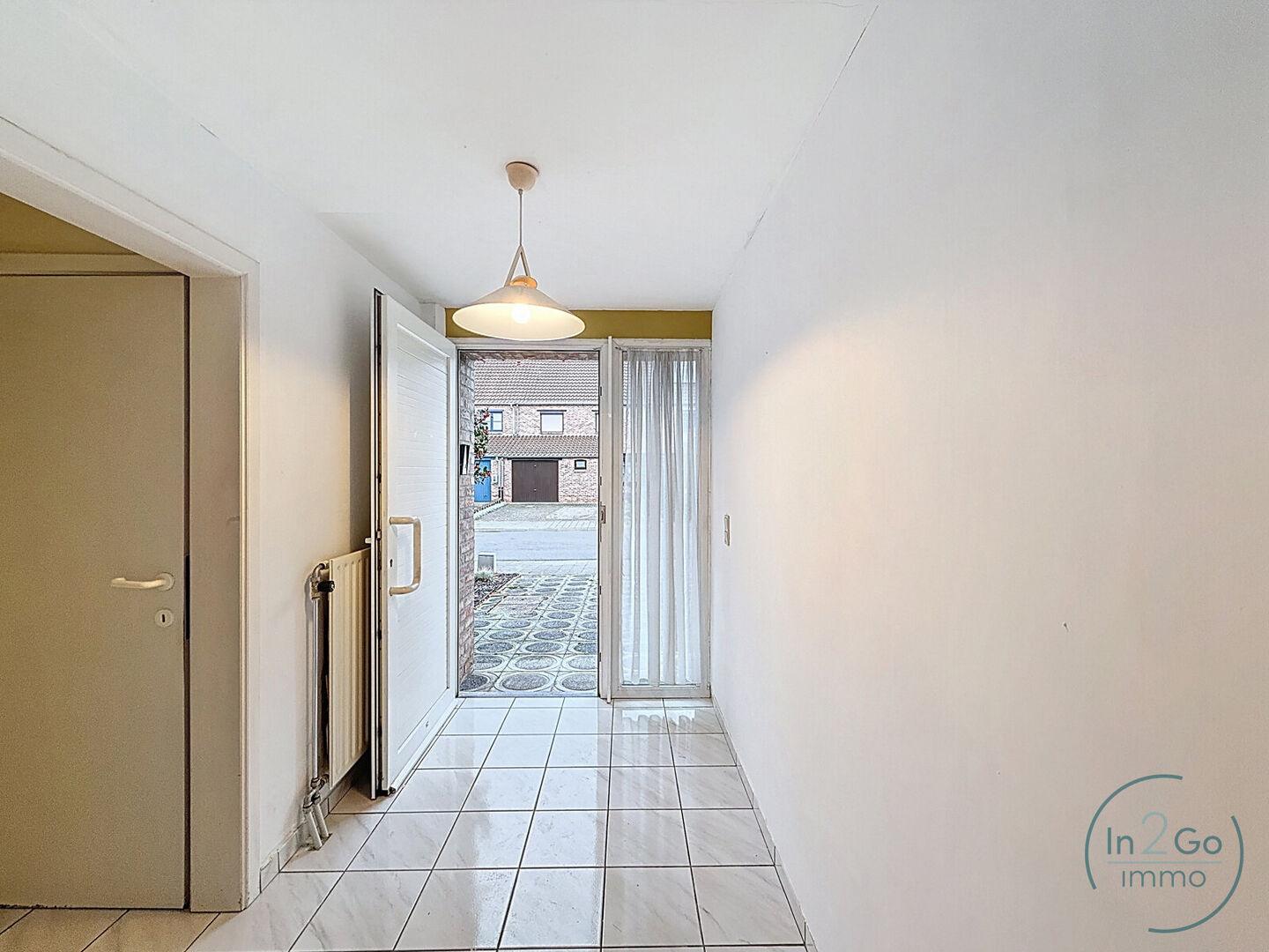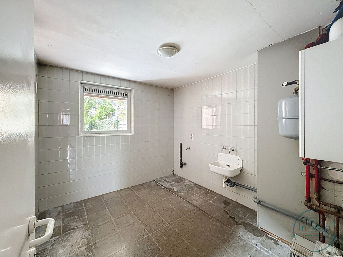 Op het gelijkvloers verwelkomt een ruime oprit je met directe toegang tot een grote garage die plaatst biedt voor 2 wagens. Deze geeft op zijn beurt uit op het gezellige terras en de aangename tuin – perfect om te ontspannen of om kinderen veilig te laten spelen. De inkomhal is voorzien van een praktische vestiairehoek en een gastentoilet. Daarnaast is er een handige wasplaats, ideaal voor het dagelijkse comfort.