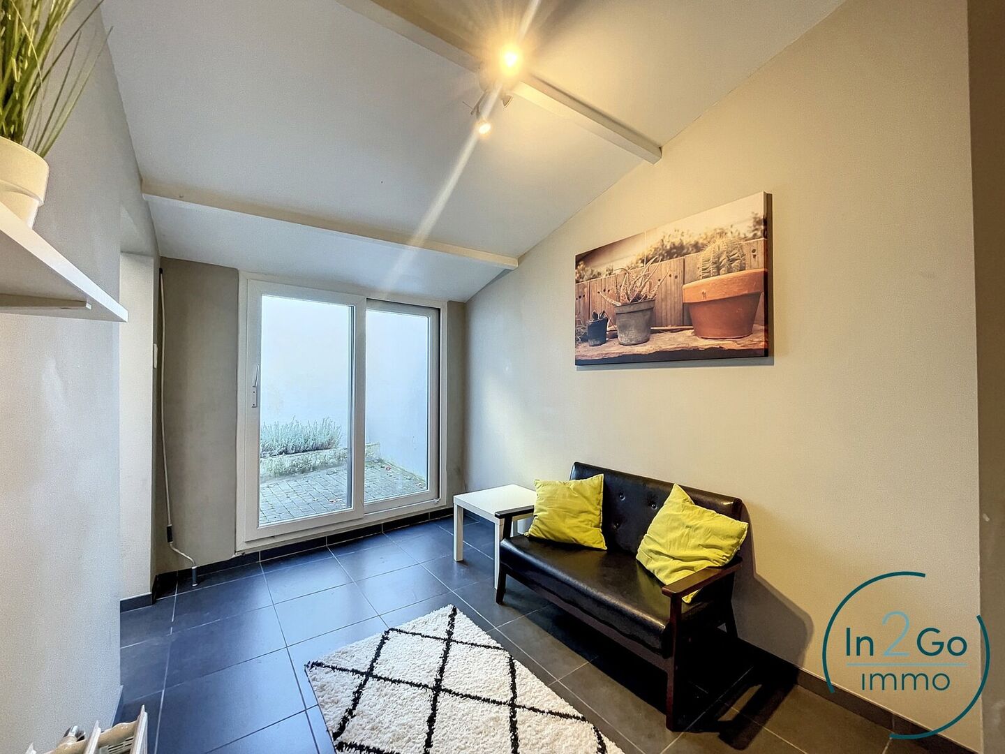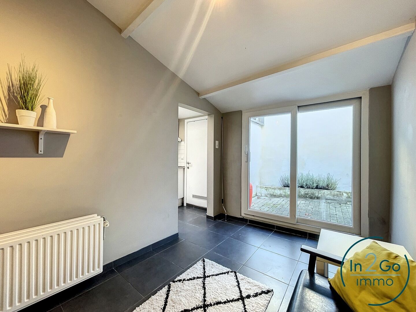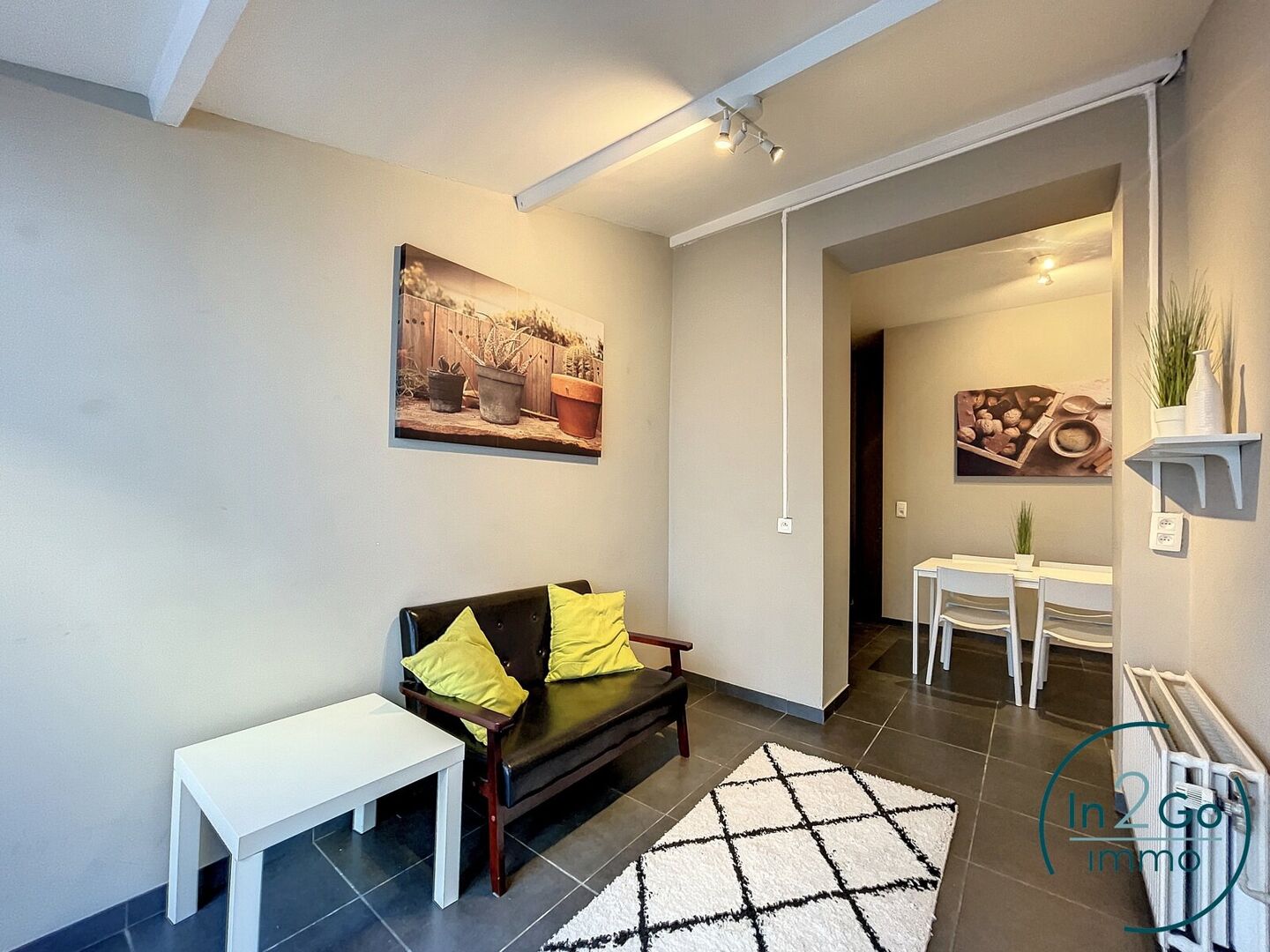 De woning beschikt op het gelijkvloers over een inkom/gang, een voorkamer (als slaapkamer of als bureau te gebruiken), een living (met een open keuken) die toegang biedt tot de binnenkoer en de badkamer met douche, lavabomeubel en toilet.