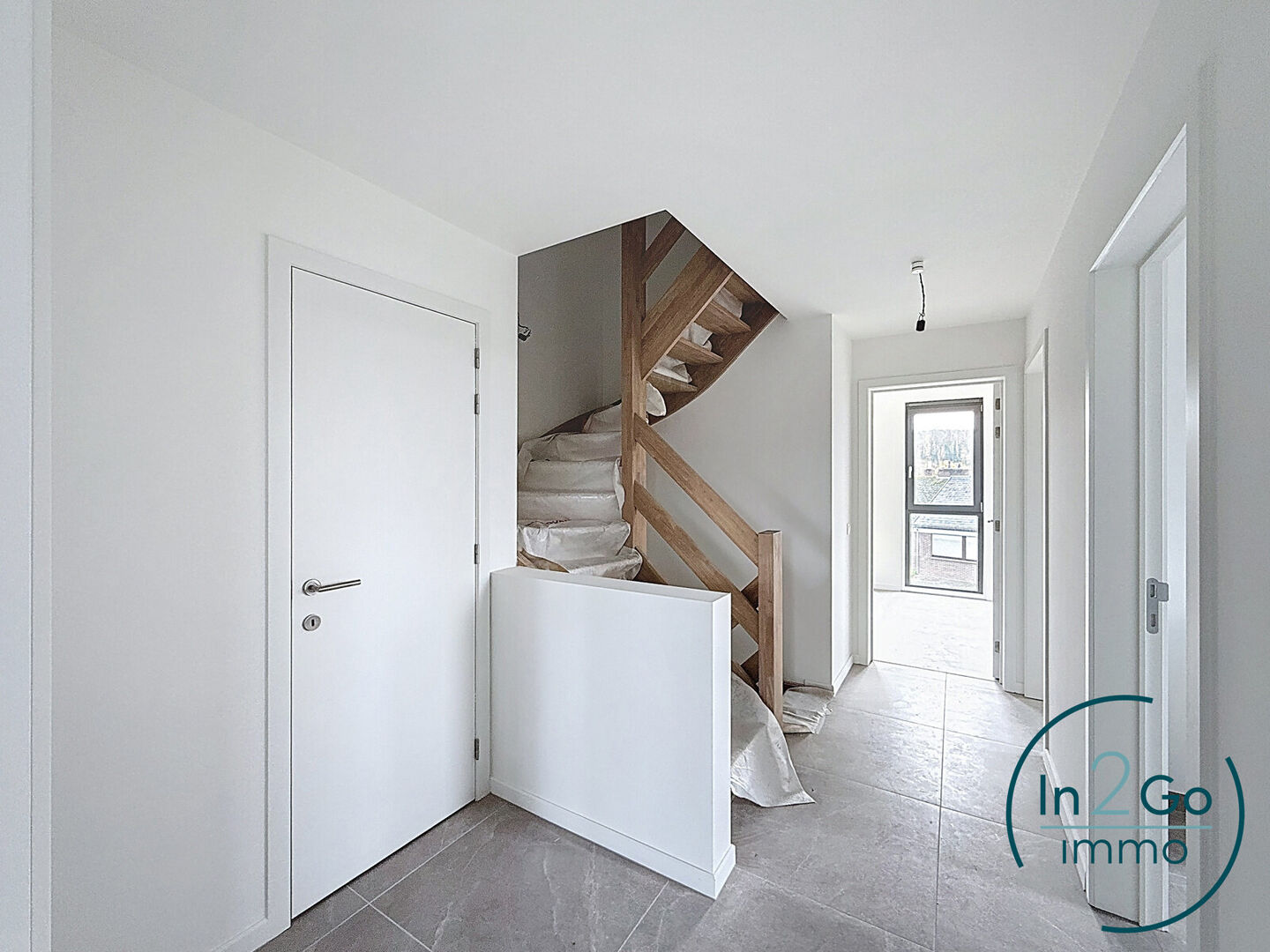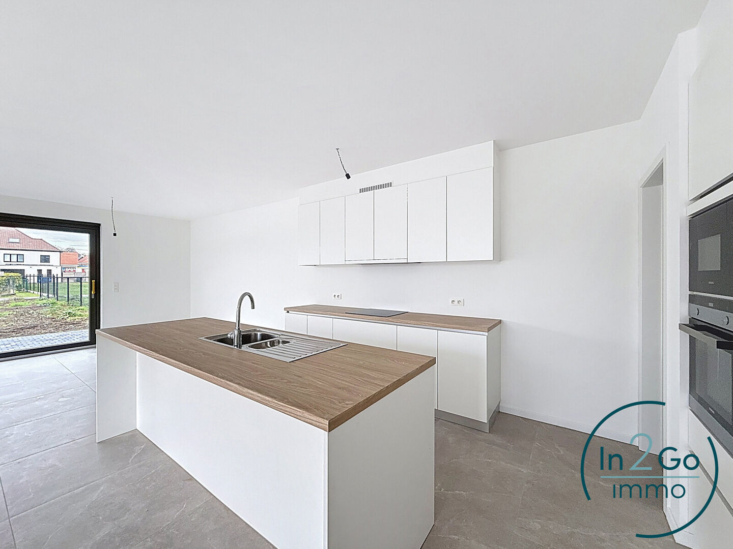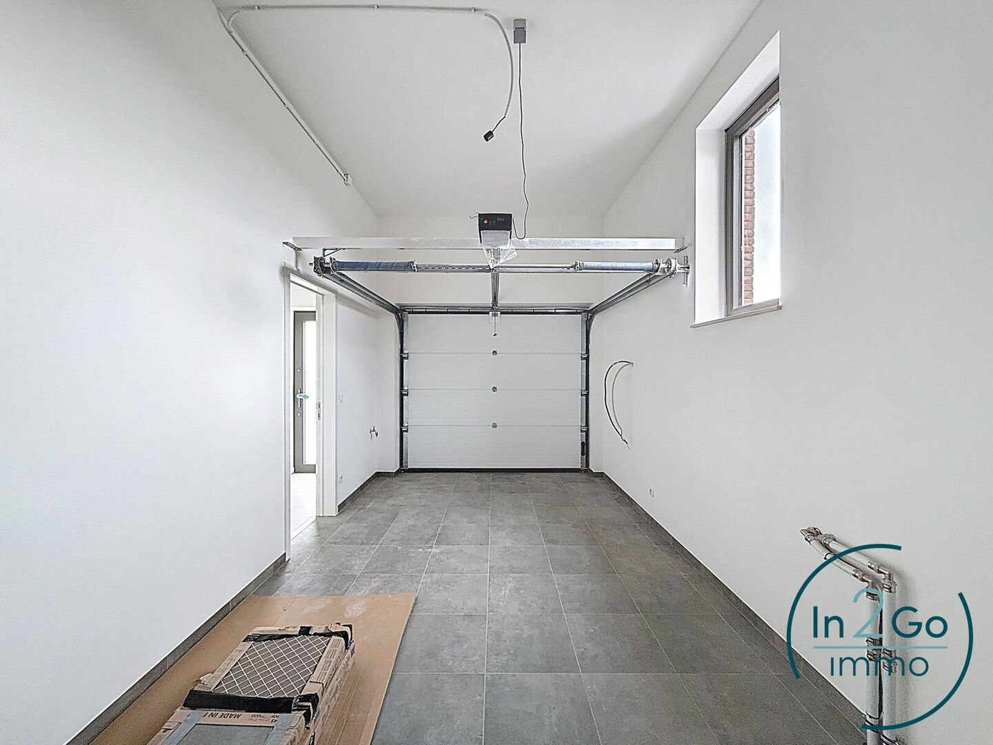 Op het gelijkvloers betreedt u de woning via een inkomhal met gastentoilet. Vanuit hier heeft u toegang tot de ruime leefruimte met groot schuifraam naar het terras en de tuin. De tijdloze open keuken is uitgerust met kwalitatieve Siemens-toestellen (inductievuur met 4 zones, vaatwasser, microgolf- en heteluchtoven en een grote frigo) en biedt veel kastruimte. Aansluitend aan de keuken bevindt zich een praktische berging/wasplaats. De inkomhal geeft ook toegang tot de inpandige garage met sectionaalpoort, deze bevat reeds de voorziening voor het plaatsen van een laadpaal.