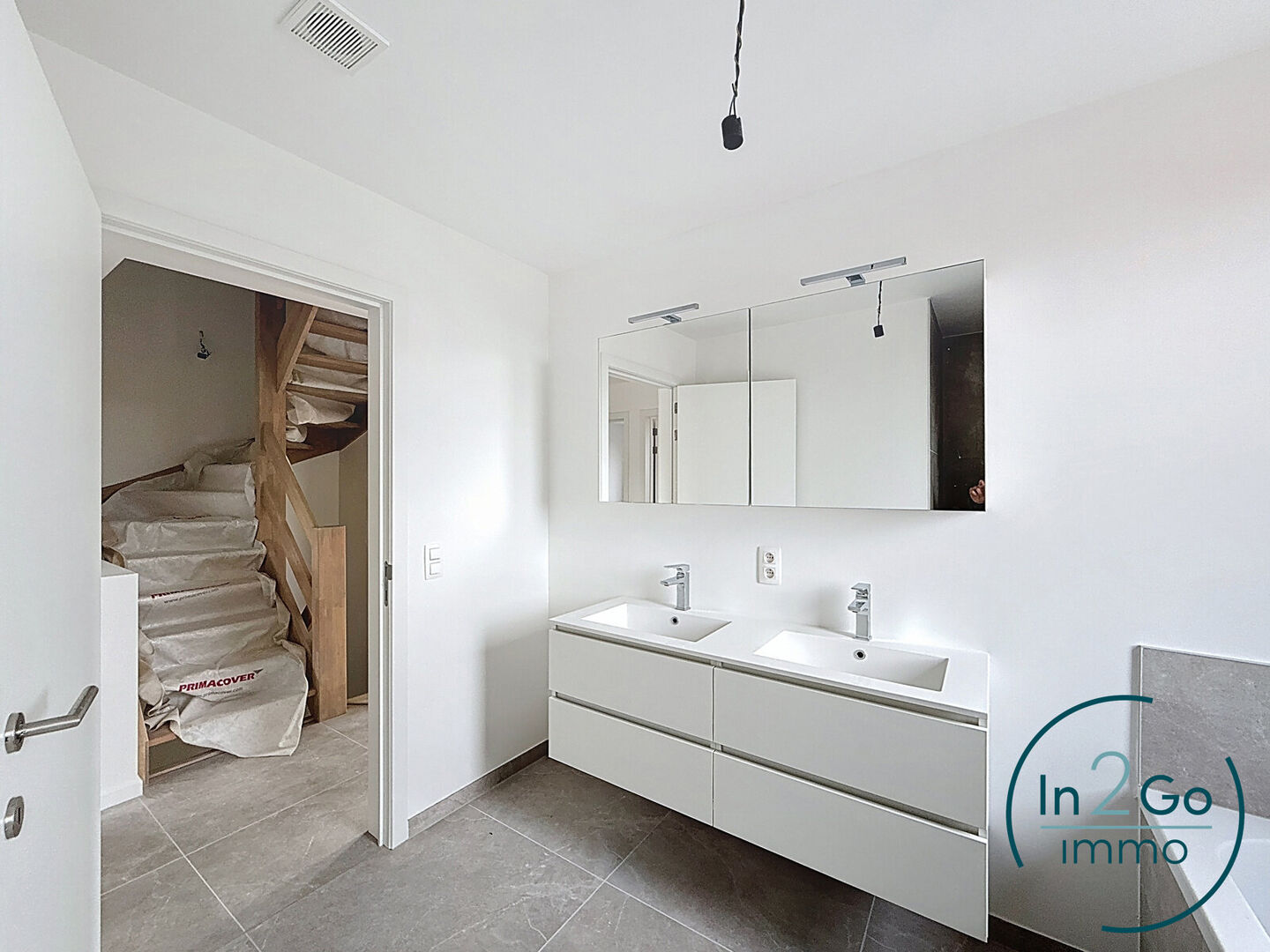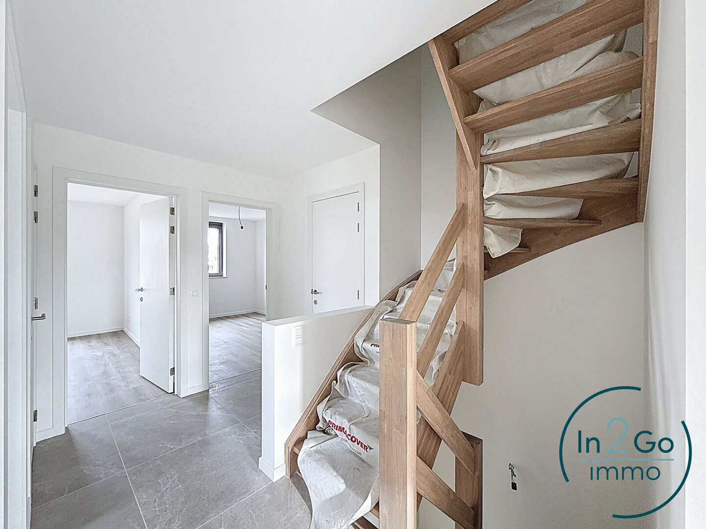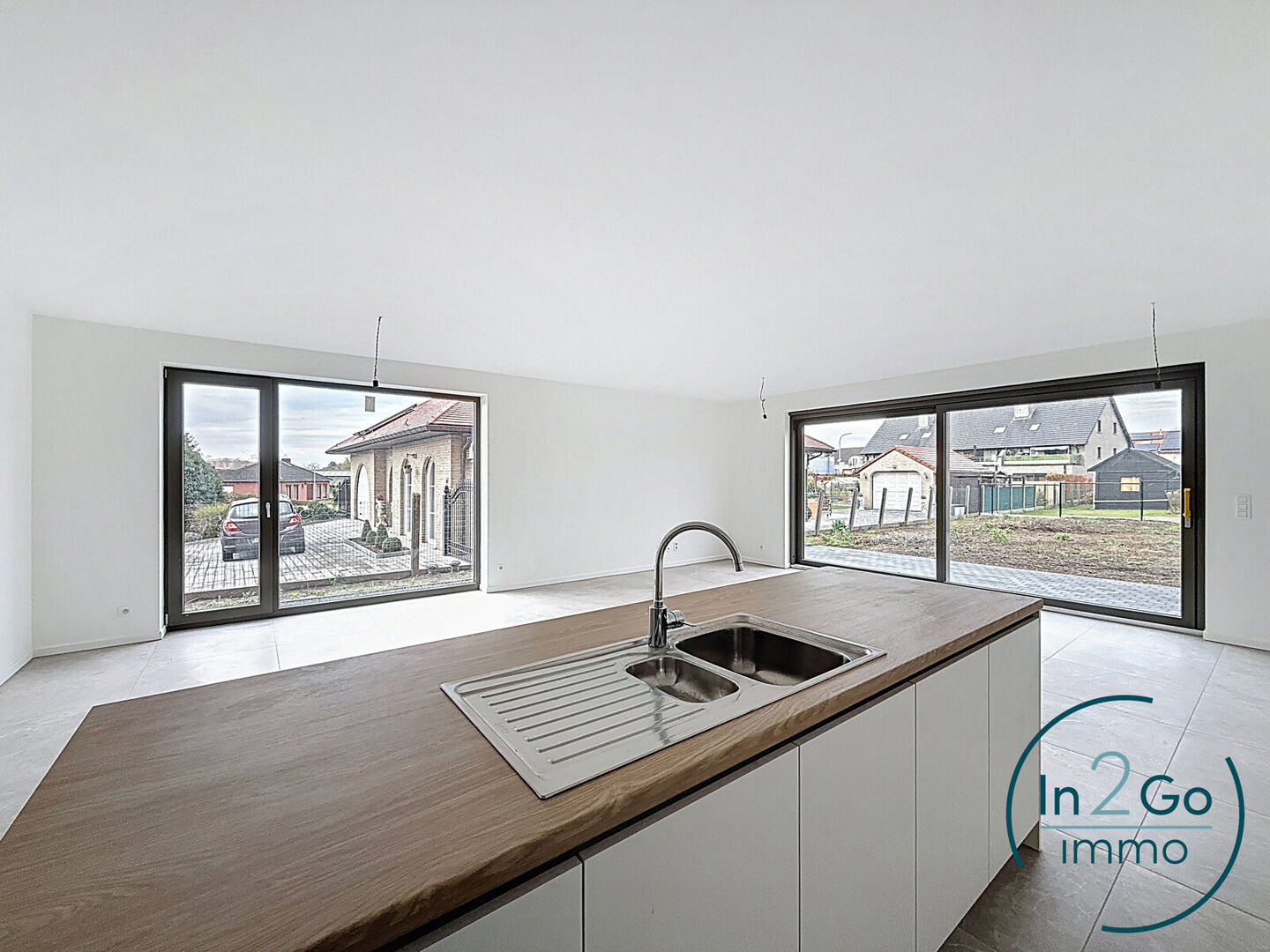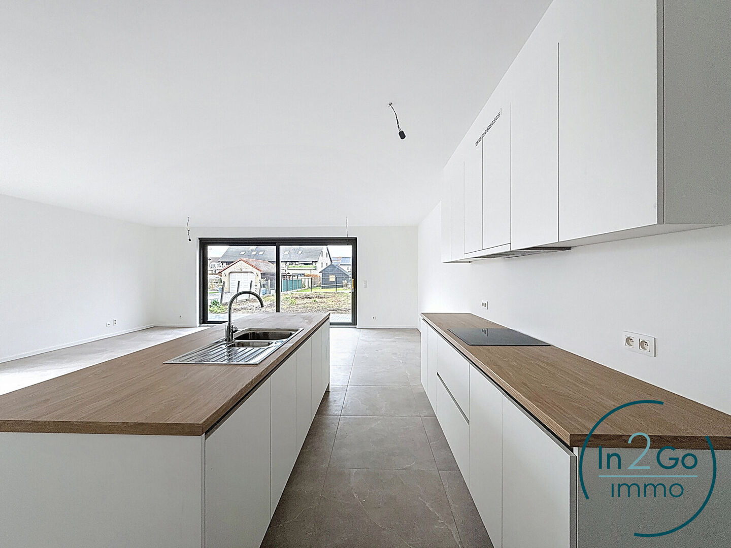 Op het gelijkvloers betreedt u de woning via een inkomhal met gastentoilet. Vanuit hier heeft u toegang tot de ruime leefruimte met groot schuifraam naar het terras en de tuin. De tijdloze open keuken is uitgerust met kwalitatieve Siemens-toestellen (inductievuur met 4 zones, vaatwasser, microgolf- en heteluchtoven en een grote frigo) en biedt veel kastruimte. Aansluitend aan de keuken bevindt zich een praktische berging/wasplaats. De inkomhal geeft ook toegang tot de inpandige garage met sectionaalpoort, deze bevat reeds de voorziening voor het plaatsen van een laadpaal.