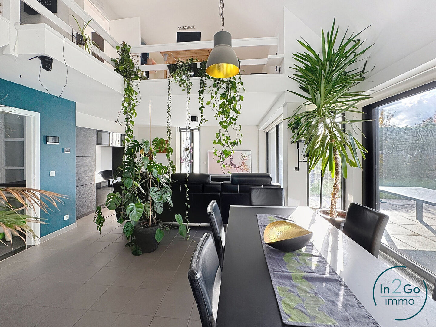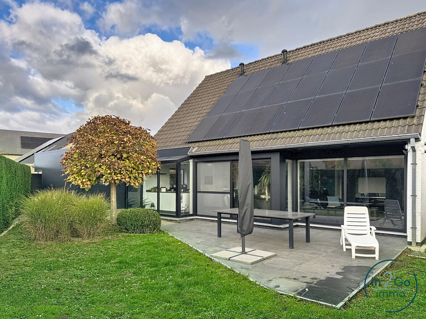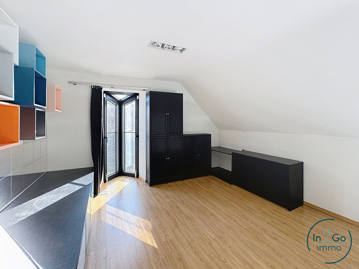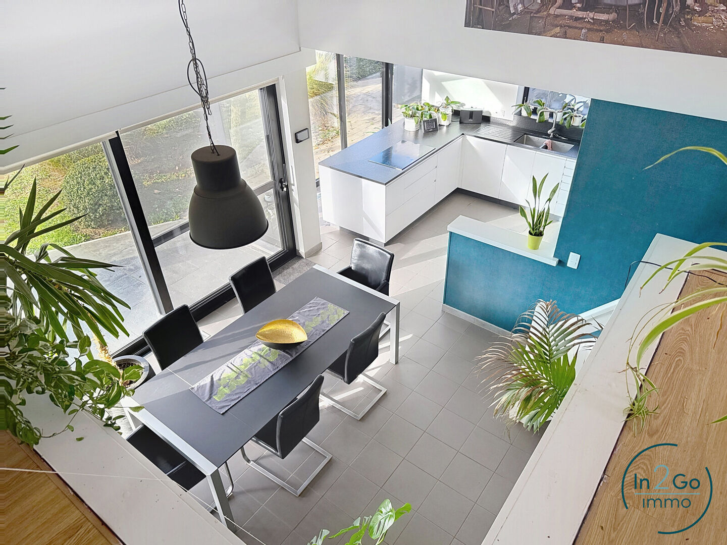 Ook is er een gastentoilet voorzien. Via de inkomhal kan u ook de bureauruimte (14m²) met op maat gemaakt bureau ontdekken. Een ruime living met zithoek baadt in het licht en gaat mooi over in de open kwalitatieve keuken die volledig werd uitgerust. Een vide geeft een royaal gevoel aan de bewoners.