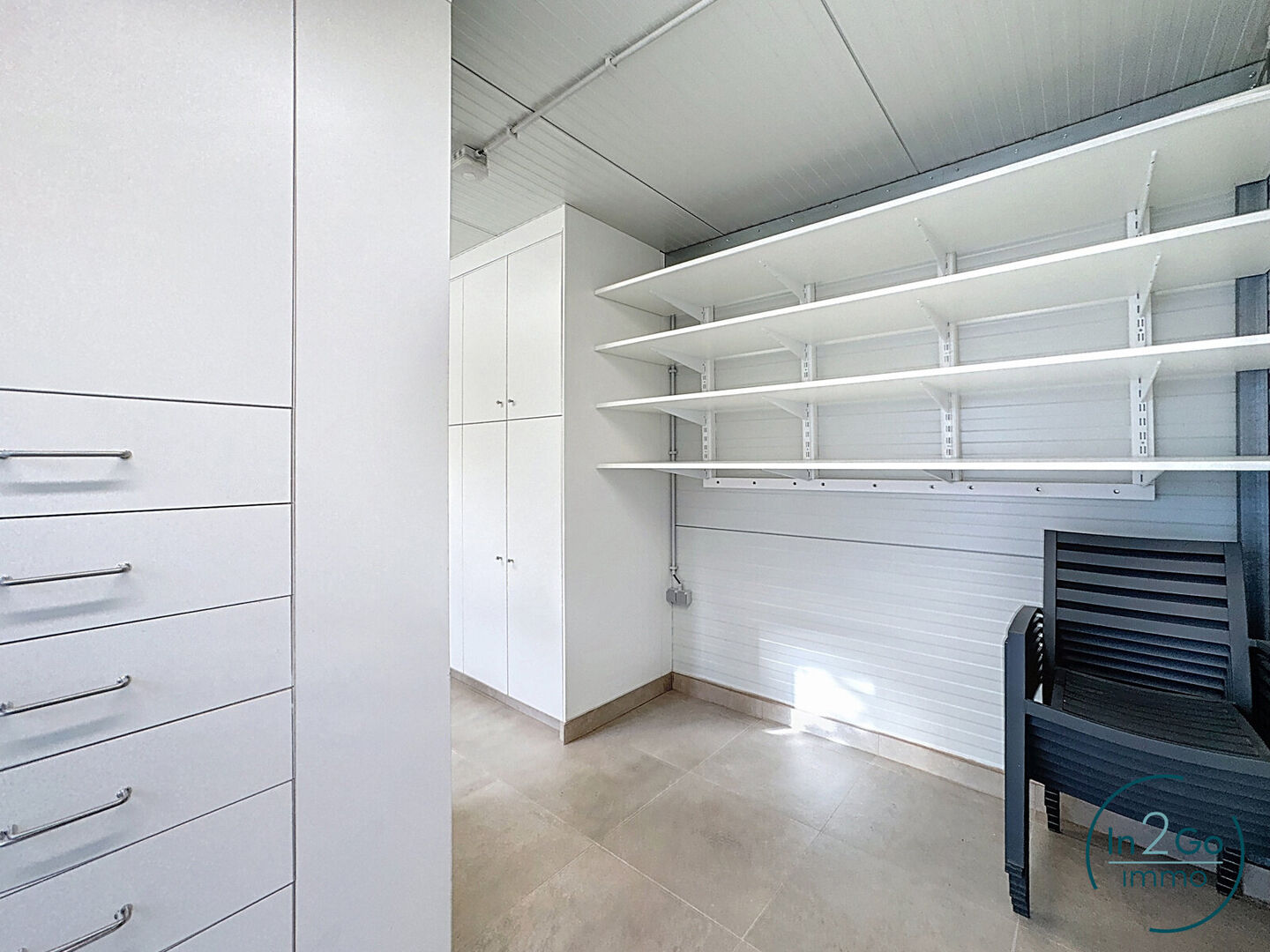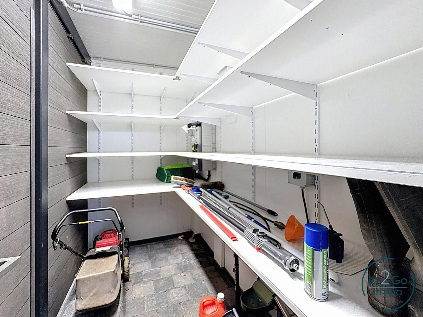 Op het gelijkvloers is er nog een bijkeuken/berging (15m²) met aansluiting voor wasmachine, droogkast. Extra handig is de douche die werd voorzien, evenals een zee aan bergruimte.